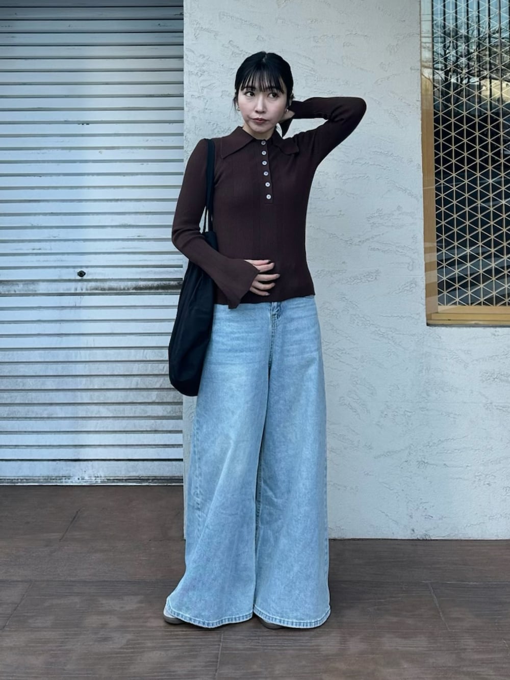 新作のブラウンのリブニット🤎 デニムに合わせてカジュアルに!
