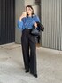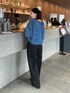 着用スタッフ158cm 骨格ストレート [トップス]フリーサイズ 毛足が長いフェザーフリンジのトップスです! Tシャツ感覚で使えるので合わせやすい✨️ ジャストな丈感なので、インせず使うことも🙆🏻♀️ 首周りがしっかり空いていて、落ち感のあるフリンジなので骨ストさんにピッタリです! [パンツ]フリーサイズ サラッとしてる素材のベーシックパンツで、シワになりにくく脚長効果抜群です! ウエストは後ろがゴムになっていて、伸縮性もあるので履きやすい◎