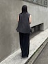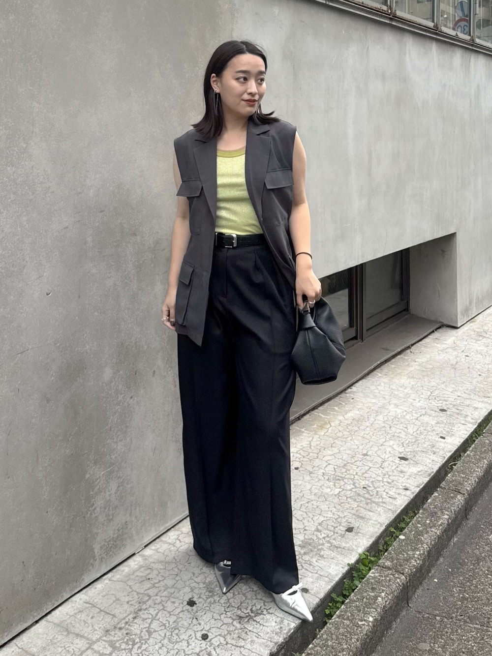 着用スタッフ158cm 骨格ストレート [ジレ]フリーサイズ おしりが隠れる丈感で肩はジャストめのサイズ感のジレ◎ ダブルポケットのデザインがモードで大人カワイイ✨️ 薄手素材なので、夏のレイヤードアイテムとして使いやすいです! [タンクトップ]フリーサイズ 袖あたりにはチュールが付いてて、タンクトップ1枚でも大人可愛く着れるトップス✨️ 首元は空いてるデザインでスッキリ着れます! [スラックス]38サイズ サラッと夏に履きやすいワイドスラックス✨️ 落ち感があって、マイナス3キロ見えしてくれる最強スラックスです! ウエストも後ろがゴムで楽ちんなデザイン◎ センタープレス入っていて足が綺麗に見えます! [ミュール]24.5cm 柔らかい素材なので、楽に履けて靴擦れもしにくいミュール。 普段のスニーカー24cmを履いてて、24.5cmを履いたので少しゆったりめ◎ ストラップの調節可能です!