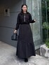 着用スタッフ158cm 骨格ストレート [トップス]フリーサイズ シワになりにくく着心地抜群のロゴTシャツ✨️ サラッとした生地で、落ち感のあるキレイめに着ていただけるTシャツです! 身幅もオーバーすぎず着やすいサイズ感◎ [スカート]フリーサイズ ストライプ柄が特徴的なティアードスカート。 落ち感があり、広がりすぎないデザインが履きやすさのポイント💡 ウエストゴムで、紐があるためサイズ調整はしていただけます!