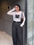 着用スタッフ158cm 骨格ストレート [トップス]フリーサイズ シアー感とこのフォトデザインが特徴的なTシャツ! 袖が長めなのがポイントで、手が長く見えるデザイン◎ 長袖ですが、シアートップスなので今からも使えるアイテムです! [デニム]38サイズ タックが特徴的で綺麗めに履けるワイドデニム! ウエストは後ろゴムなので、とにかく楽に履けるパンツとなってます! 柔らかく落ち感があり、スラックス感覚で履けるのでデニムを今まで履きこなせなかった方にもピッタリ✨️