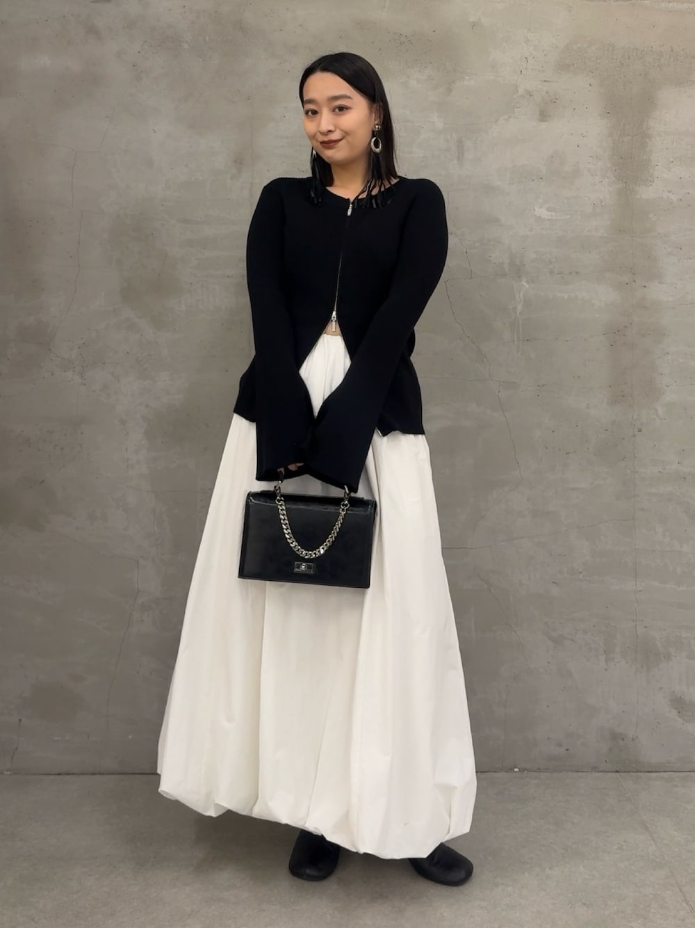 着用スタッフ158cm 骨格ストレート [トップス]フリーサイズ 袖がフレアデザインで、ダブルジップ。とにかく着映え間違いなしなリブニットです♥ モードに映えるトップスで、ニットだけどチクチクしないのがポイント✨️ フレアスリーブなので華奢見え間違いなし!