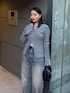 着用スタッフ158cm 骨格ストレート [トップス]フリーサイズ 袖がフレアデザインで、ダブルジップ。とにかく着映え間違いなしなリブニットです♥ モードに映えるトップスで、ニットだけどチクチクしないのがポイント✨️ フレアスリーブなので華奢見え間違いなし! [デニム]38 とにかく下半身詐欺が叶う骨スト優勝デニム✨️ モードカジュアルな印象になるカーブデニムで、腰周りもおしり周りもすっきりみえします! カラーもシーズンレスで着やすいカラーリング💞 158cm以上の方は38のサイズがおすすめです!