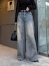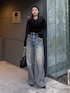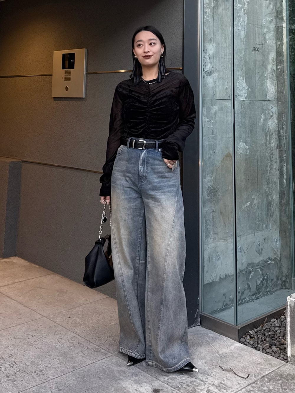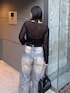 着用スタッフ158cm 骨格ストレート [トップス]フリーサイズ ベロア素材のシアートップス🖤 フロントのギャザーがポイントなので、インせず出して着るのが可愛いです🎀 高級感抜群なので、1枚で綺麗めコーデが完成します! [デニム]38 とにかく下半身詐欺が叶う骨スト優勝デニム✨️ モードカジュアルな印象になるカーブデニムで、腰周りもおしり周りもすっきりみえします! カラーもシーズンレスで着やすいカラーリング💞 158cm以上の方は38のサイズがおすすめです!