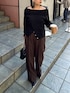 着用スタッフ158cm 骨格ストレート [ニット]フリーサイズ オフショルにもワンショルにもなって着るだけで簡単にお姉さんコーデになるオフショルニット🖤 タックインしても可愛いですし、アウトで着たらボタンデザインがあってスリットが作れるデザインです! チクチクしない素材なのも嬉しいです🎀 [スラックス]38サイズ 程よいセミフレアデザインで、太ももを拾いすぎない素材感とワイド加減かポイント💡 フロントタックからセンタープレスが施されてるデザインで、細見え効果抜群です✨️ 伸縮性のある生地なので、動きやすさも抜群! 履くだけで足に隙間が出来るデザインなので、特に骨スト大優勝アイテムとなってます🎀