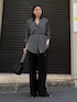 着用スタッフ158cm 骨格ストレート [シャツ]フリーサイズ ウエストマークできる紐の付いたテーラードシャツ。 肩がジャストめなサイズ感なので、骨ストの私が華奢になれたトップス♥️ 首元がスッキリ見えて、後ろにはスリットが入ってるので全身綺麗に見えます✨️ [スラックス]38サイズ 程よいセミフレアデザインで、太ももを拾いすぎない素材感とワイド加減かポイント💡 フロントタックからセンタープレスが施されてるデザインで、細見え効果抜群です✨️ 伸縮性のある生地なので、動きやすさも抜群! 履くだけで足に隙間が出来るデザインなので、特に骨スト大優勝アイテムとなってます🎀 [ベルト]フリーサイズ 本革で高級感のあるバックルが他にないデザインのベルトです。 シンプルなパンツに付けるだけで、一気に雰囲気が変わります✨️ 本革ですが、着用感が軽く使いやすいです◎