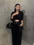 着用スタッフ158cm 骨格ストレート [ジャケット]フリーサイズ 開襟シャツのようなデザインの綺麗めジャケット。 後ろにファスナーが付いていて、後ろ姿に抜け感でるデザイン✨️ 着られてる感なしなので、普段使いしやすいジャケットとなってます! 肩はジャスト、身幅はややゆとりあるサイズ感で着やすさ抜群です! [スラックス]38サイズ モードカジュアルが好きな人にピッタリな、カーゴスラックス。 サテン素材でとにかく綺麗見え。高級感抜群な素材感で、周りと被らないモードな印象に。 ウエストは後ろゴムで、ベルトループもあるので、楽ちんです! ドローコードも付いていて、裾を絞ることも出来ます✨️