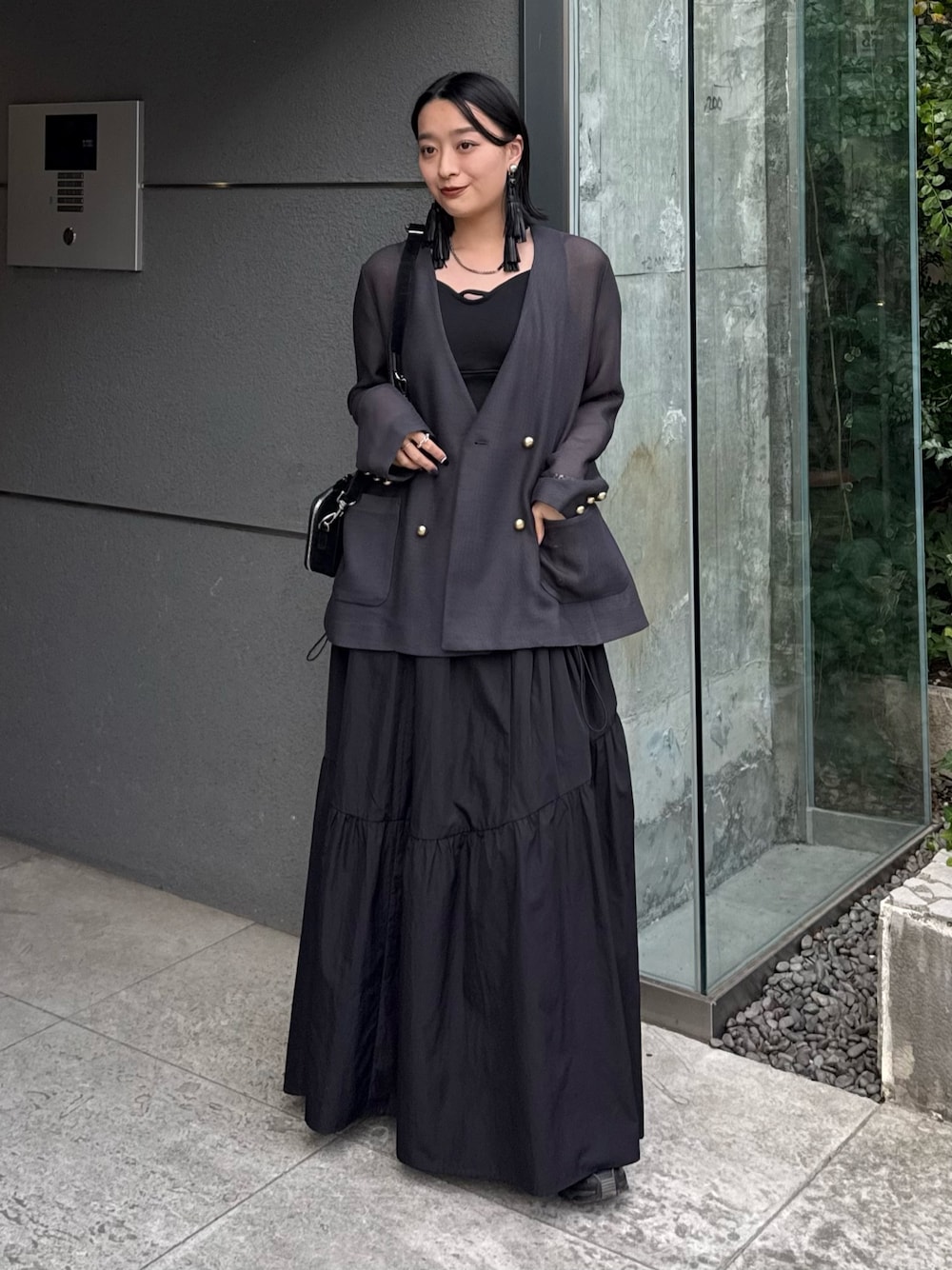 着用スタッフ158cm骨格ストレート [ジャケット]フリーサイズ ノーカラーで後ろがスリットになってるデザインのメッシュジャケット🖤 キレイめでオフィスコーデにもピッタリ◎ 襟がないデザインなので、首元がスッキリ見えします! インナーにTシャツやシアートップス入れるのも可愛いです🙆♀️ [スカート]フリーサイズ ウエストは総ゴムでサイドのビックポケットが特徴的なモードカジュアルなスカートです! シャカシャカ素材でオールシーズン履きやすい素材感◎ ストンと落ちる素材なので、バルーンシルエットですが着膨れ感なしです! [バッグ]フリーサイズ どのシーンでも活躍するポーチ付きのショルダーバッグ🖤 長さ調節が可能で、ななめがけと肩掛けが可能◎ 大きすぎず、小さすぎないサイズ感がちょっとそこまでやお出かけシーンにもピッタリ! 高級感のあるフェイクスエードの素材と、フェイクレザーでどちらを選んでもメンズもレディースも持ちやすいデザインです✨️