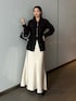 着用スタッフ158cm 骨格ストレート [トップス]フリーサイズ 首元にZIPが付いてて、後ろはリボンが付いてるのでクビレが簡単に作れるモードなシャツ🖤 フロントの裾にはスリットも付いてるため、着るだけで簡単に着痩せコーデが完成✨️ 春大活躍してくれるトップスです! [スカート]フリーサイズ ウエストゴムで、シルエットが綺麗なサテンスカートです! 生地しっかりしてて、シーズンレスで着れちゃうの嬉しい🖤 丈もゴムなので折り返して着ていただけば、低身長の方も使えます!