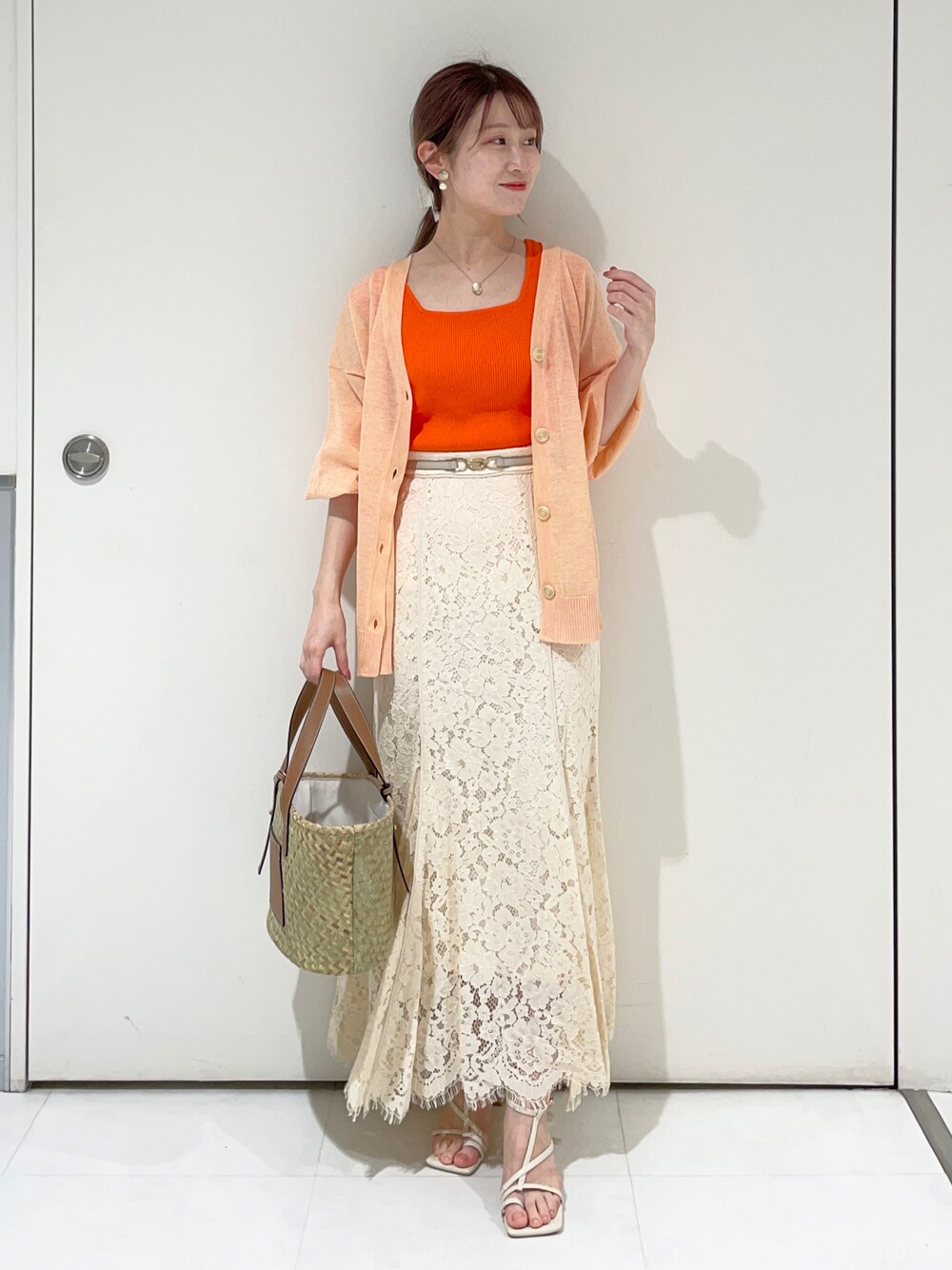 爽やかオレンジコーデ☺︎ レーススカートと合わせて上品に♪
