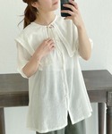 つけ襟がキュートなチュニック❤︎ 大人っぽい花柄スカートと合わせてフェミニンコーデ♪