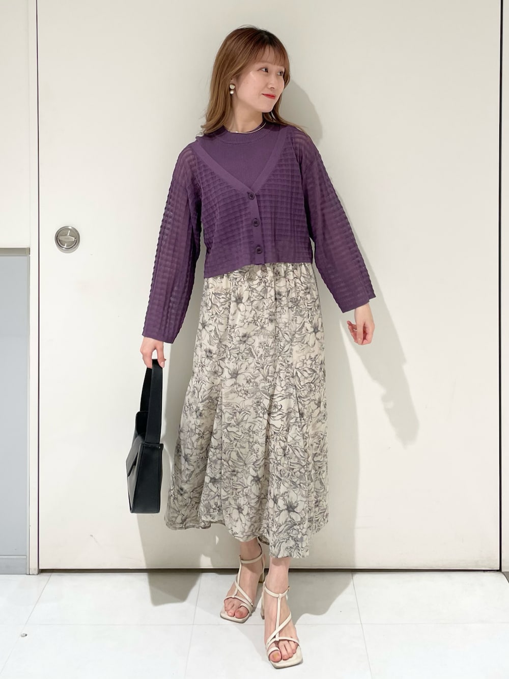 店頭でも大人気の新作カーディガンは 同色のインナーと一緒に着てもオシャレ⭐︎ 大人っぽく花柄スカートと合わせました♪