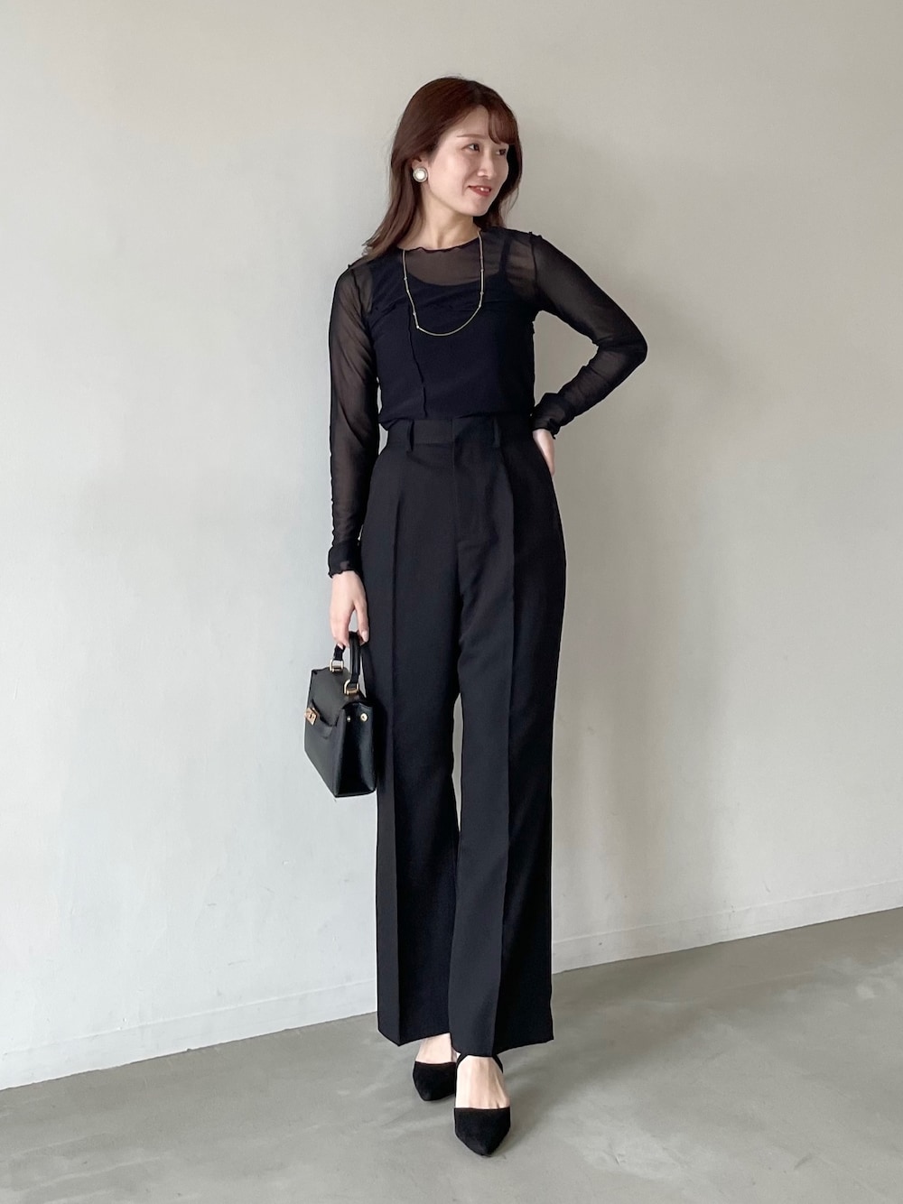 珍しいオールブラックコーデ❤︎ パンプス合わせで綺麗めに! シアートップスから見えるアシメタンクがお洒落♪ Instagram▶︎mw._.mio