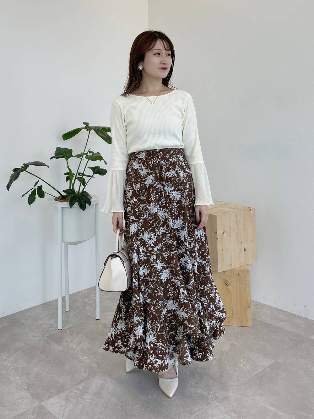 155cm|骨格ウェーブ 【トップス】 プリーツのベルスリーブが特徴的なトップス! ベルスリーブ部分は少し透け感があり、長袖でも軽やかな印象に♪ 【スカート】 新しい柄になって帰ってきたエスカルゴスカート❤︎ 揺れ感が可愛い、細見えする!と大人気なスカートです。 シーズンレスで使える生地感なのもオススメポイント☺︎ 【シューズ】 サイドのねじりストラップがお洒落!ポインテッドトゥデザインなのもお気に入りポイントです♪綺麗めコーデにぴったりなシューズです。 ※サンプルのためシューズはLサイズを着用していますが、普段は23.5cmでMサイズを履いています