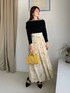 155cm|骨格ウェーブ 【トップス】 デコルテラインが綺麗に見えるトップス! さらに袖が少し短めで手首が細く見え、着痩せ効果のあるアイテムです☺︎ 【スカート】 柔らかい素材のフレアシルエットなので揺れ感が綺麗❤︎ シワにもなりにくいところもオススメポイントです。 アソート柄なので、お気に入りの1枚を見つけてください♪ 【シューズ】 サイドのねじりストラップがお洒落!ポインテッドトゥデザインなのもお気に入りポイントです♪綺麗めコーデにぴったりなシューズです。 ※サンプルのためシューズはLサイズを着用していますが、普段は23.5cmでMサイズを履いています