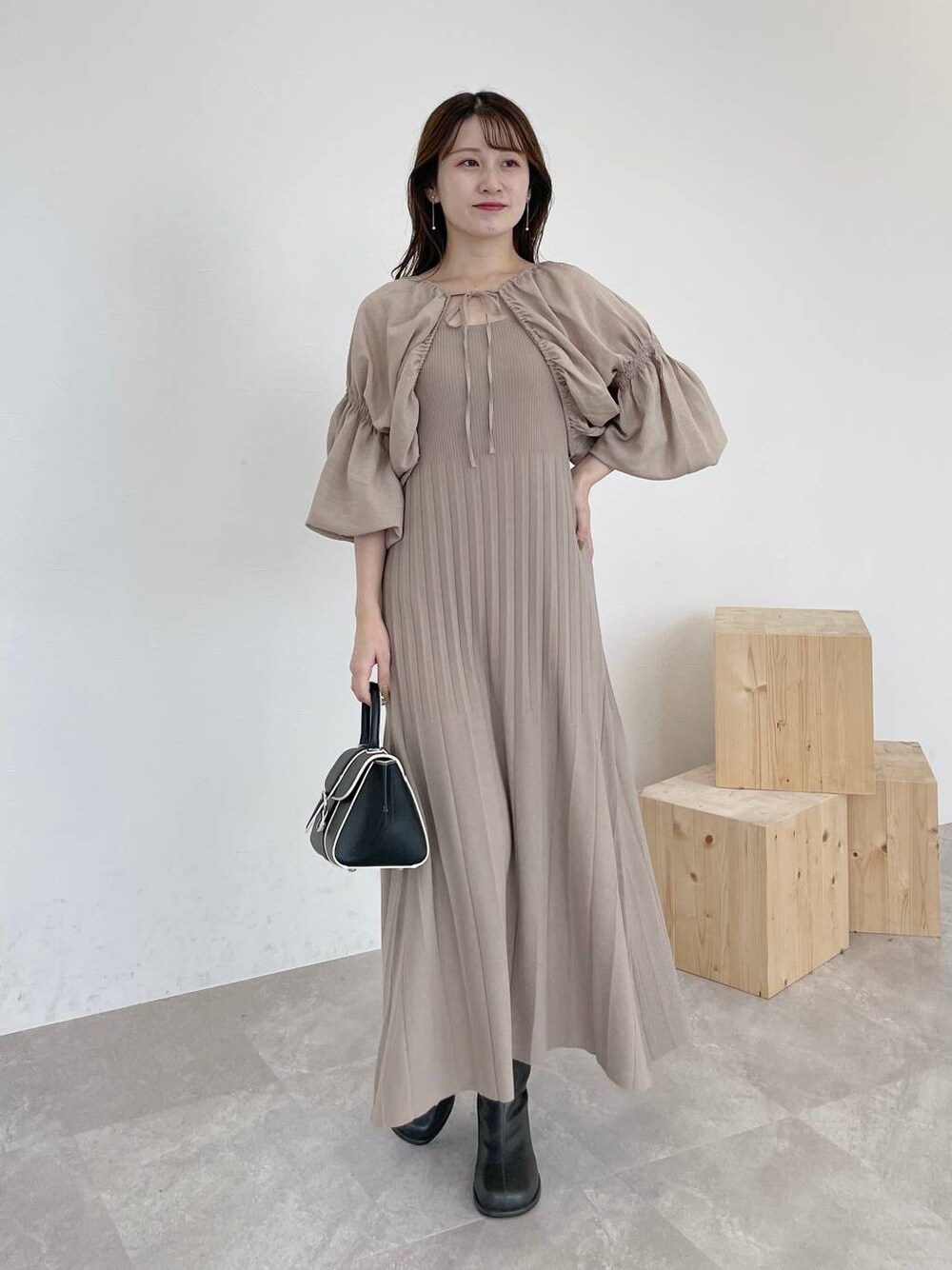 155cm|骨格ウェーブ 【ワンピース】 ボレロとノースリーブのワンピースがセットのアイテムです。 ボレロの紐は胸元で結ぶとポイントに♪捲って、よりボリュームスリーブしても可愛いです! ニットワンピースは意外と身体のラインを拾わないので安心して履けました☺︎ 【ブーツ】 シンプルですが、丸みのあるつま先と変形ヒールがひと癖あるブーツ。丸みのあるつま先は余裕があり、窮屈感なく履けます♪ ※サンプルのためシューズはLサイズを着用していますが、普段は23.5cmでMサイズを履いています