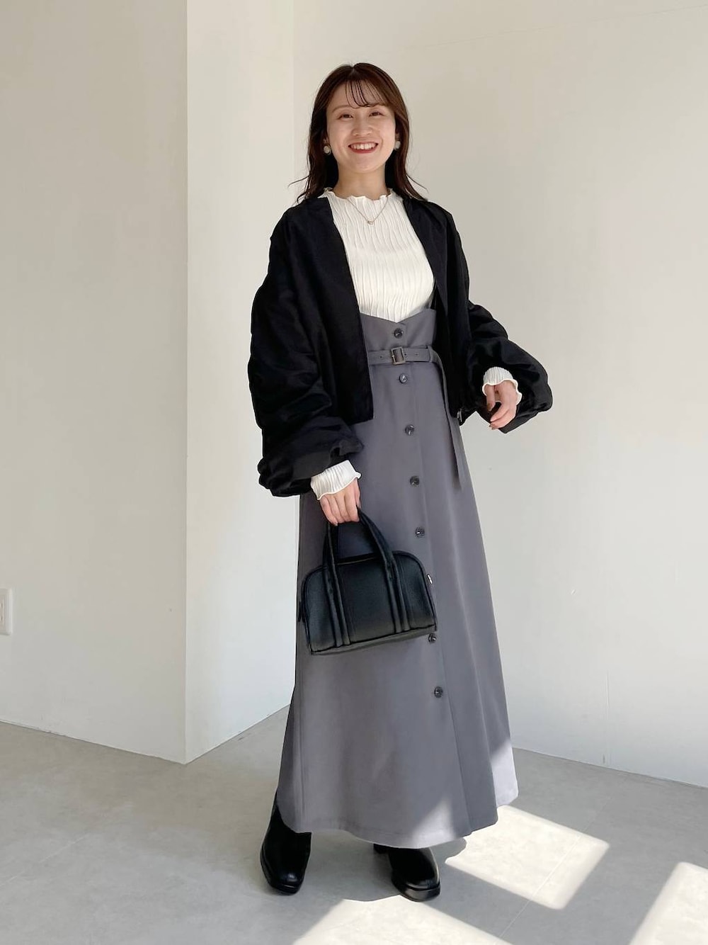 155cm|骨格ウェーブ 【ブルゾン】 ボリュームたっぷりの袖がカジュアルになりすぎず、フェミニンコーデにマッチしやすいブルゾン! ワンピースにさらっと羽織るのもオススメです☺︎ 【トップス】 web限定のシンプルなクシュクシュトップス♡ プチプラで、色違いでも欲しくなっちゃうカラー展開♪ 1枚でもレイヤードでも楽しめます☺︎ 【スカート】 大人気の定番スカートに可愛いくすみカラーが♡ タイトすぎず広がりすぎないシルエットは細見え&体型カバーできます。 厚すぎなければニットもインできるので様々なトップス合わせで楽しめます! 【ブーツ】 レースアップデザインがポイントなブーツ!とてもほっそり見えてフェミニンコーデにもカジュアルコーデ合わせにもおすすめ。レースアップでフィット感も調整できます☺︎ ※サンプルのためシューズはLサイズを着用していますが、普段は23.5cmでMサイズを履いています