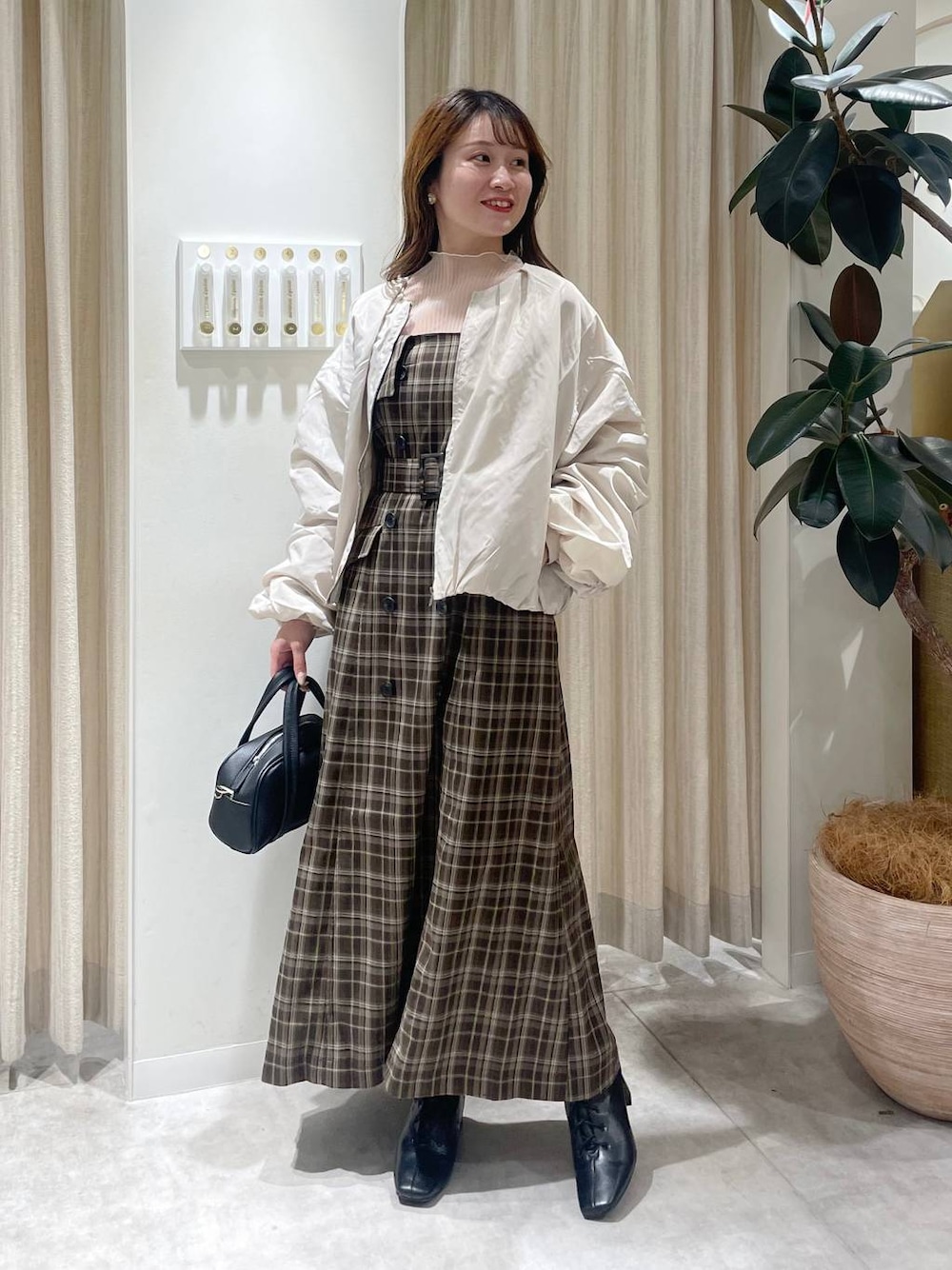 155cm|骨格ウェーブ 【ブルゾン】 ボリュームたっぷりの袖がカジュアルになりすぎず、フェミニンコーデにマッチしやすいブルゾン! ワンピースにさらっと羽織るのもオススメです☺︎ 【トップス】 プリーツ加工で立体的なシアートップスです☺︎ 無地とチェック柄のアソートで、カーディガンのインナーなどにおすすめです! 【ジャンスカ】 みんな大好きトレンチジャンスカ♪ ウエストはベルトでマークできますが、締め付けもなくラクな着心地です☺︎ 合わせるトップスを変えれば長い季節使えます。 【ブーツ】 レースアップデザインがポイントなブーツ!とてもほっそり見えてフェミニンコーデにもカジュアルコーデ合わせにもおすすめ。レースアップでフィット感も調整できます☺︎ ※サンプルのためシューズはLサイズを着用していますが、普段は23.5cmでMサイズを履いています