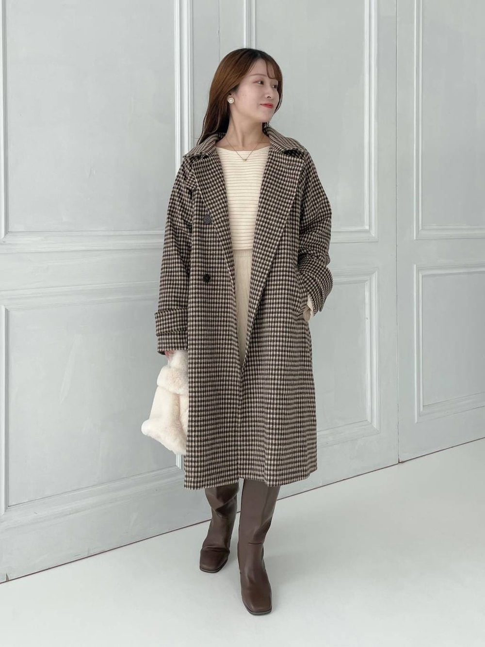 155cm|骨格ウェーブ 【コート】 S.MサイズのMサイズを着用しています。 オーバーサイズすぎない、長すぎない丈感で着膨れもしにくいです。 ネックデザインは3wayで着ていただけます♪ 【ワンピース】 ボートネック&ドルマンスリーブが女性らしいデザイン! ウエストのリブでスカートの丈を少し調整できます☺︎ モテ確定のニットワンピース…♡ 【ブーツ】 チャックがなくそのまますぽっと履けるロングブーツ! ヒールは高すぎず、長時間履いていても疲れにくそうな高さです♪ ※サンプルのためシューズはLサイズを着用していますが、普段は23.5cmでMサイズを履いています