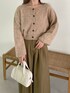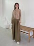 155cm|骨格ウェーブ 【トップス】 webでしかゲットできないカーディガン! 前後2way、羽織りで着ていただけます♪ つぶつぶっとした模様が特徴的で、一気にお洒落さんに☺︎ クルーネックなのでシアーのハイネックなどをレイヤードする着方もおすすめです。 【パンツ】 ボリューム感のあるワイドパンツですが、タック入りで腰周りは広がりを抑えてくれます☺︎ トップスはショート丈のものを合わせるか、インした着こなしがオススメです! 【ブーツ】 レースアップデザインがポイントなブーツ!とてもほっそり見えてフェミニンコーデにもカジュアルコーデ合わせにもおすすめ。レースアップでフィット感も調整できます☺︎ ※サンプルのためシューズはLサイズを着用していますが、普段は23.5cmでMサイズを履いています