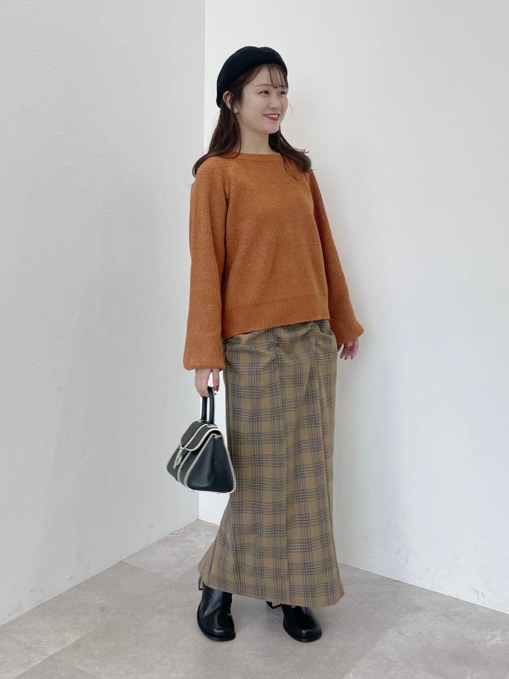 155cm|骨格ウェーブ 【ニット】 ニットのカラーをアイスクリームのフレイバーに例えた名前も可愛すぎるニット!! 柔らかい生地感でチクチクゼロです! 形はシンプルで、首元は開きすぎず詰まりすぎずなクルーネック。 お袖は少し長めでボリュームが出せます❤︎ 【ジャンスカ】 少しタイトなシルエットが細見えを叶えてくれるジャンスカです! インナーを変えれオールシーズン着回せるアイテム♪ 後ろのボタンで2段階丈を調節できます。 【ブーツ】 シンプルですが、丸みのあるつま先と変形ヒールがひと癖あるブーツ。丸みのあるつま先は余裕があり、窮屈感なく履けます♪ ※サンプルのためシューズはLサイズを着用していますが、普段は23.5cmでMサイズを履いています