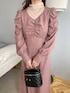 155cm|骨格ウェーブ 【アウター】 愛甲千笑美さんとのコラボアイテム! パワショルとサイドの深めスリットが特徴的なアウターです。 しっかりロング丈ですがスリットが入っているので足捌きもよく、重たく見えません! 付属ベルトを使って後ろで結んたり前で閉めてもお洒落です☺︎ 155cmでくるぶしくらいの長さです♪ ブーツと合わせると、よりスタイルアップできます! 【ワンピース】 ツイード生地が秋冬っぽく、シンプルなのにパイピングデザインがコーディネートを引き締めてくれます。 バックスタイルはちらっと肌見せでき、リボンもポイントに! 【シューズ】 光沢感のあるエナメル素材が上品さ増すシューズ。 ベルトの下はボタンなので脱ぎ履きしやすい仕様です! ※サンプルのためシューズはLサイズを着用していますが、普段は23.5cmでMサイズを履いています