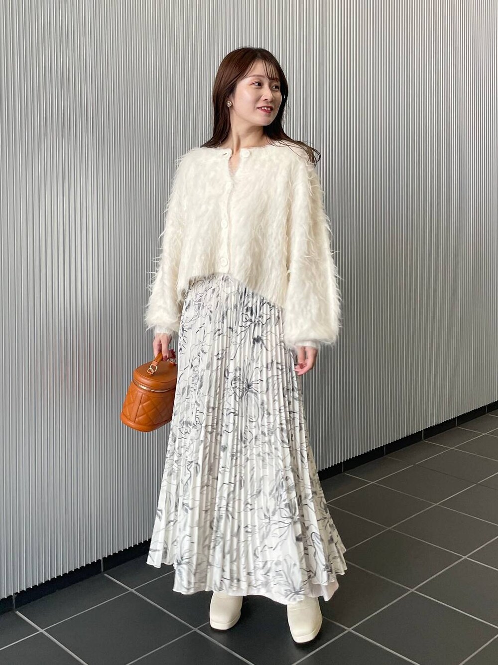 155cm|骨格ウェーブ 【カーディガン】 ふわっふわな素材が秋冬大活躍間違いなしのカーディガン♪ 前後2way、羽織りでも着られます☺︎ ショート丈なのでボトムスとのバランスがとりやすいです! 【スカート】 大人気のリバーシブルスカート! プリーツ面で履くと、裾から裏生地が見えるのがポイント☺︎ 新色ブラックが加わって4色展開になりました♪ Mサイズ着用で、155cmだとくるぶしくらいの丈感です! 【ブーツ】 厚底デザインなのでヒールの高低差は少なく疲れにくいです。ヒールも太めで安定感があります。 ※サンプルのためシューズはLサイズを着用していますが、普段は23.5cmでMサイズを履いています