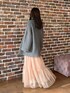 155cm|骨格ウェーブ 【カーディガン】 袖のボリュームたっぷりなカーディガン☺︎ ゆるっと感がお洒落で秋の羽織りで使いやすいです! ミドル丈なのでお尻も隠れ、ワンピース合わせがおすすめ♪ 【ワンピース】 美容系YouTuber「コスメヲタちゃんねるサラ」さんとのコラボアイテム! 「着るクリスマスコフレ」をテーマに、見るだけでもときめき着ても心弾むアイテムです。 ニットとチュールのドッキングデザインで、チュールには程よい大きさのラメ&スパンコール入り♡ フレア袖には手首が細く綺麗に見えるようにスリットが入っています!1枚で映えること間違いなし! ショートからロングアウター、アウター合わせも困らずコーディネートしやすいです♪ 【ブーツ】 厚底デザインなのでヒールの高低差は少なく疲れにくいです。ヒールも太めで安定感があります。 ※サンプルのためシューズはLサイズを着用していますが、普段は23.5cmでMサイズを履いています