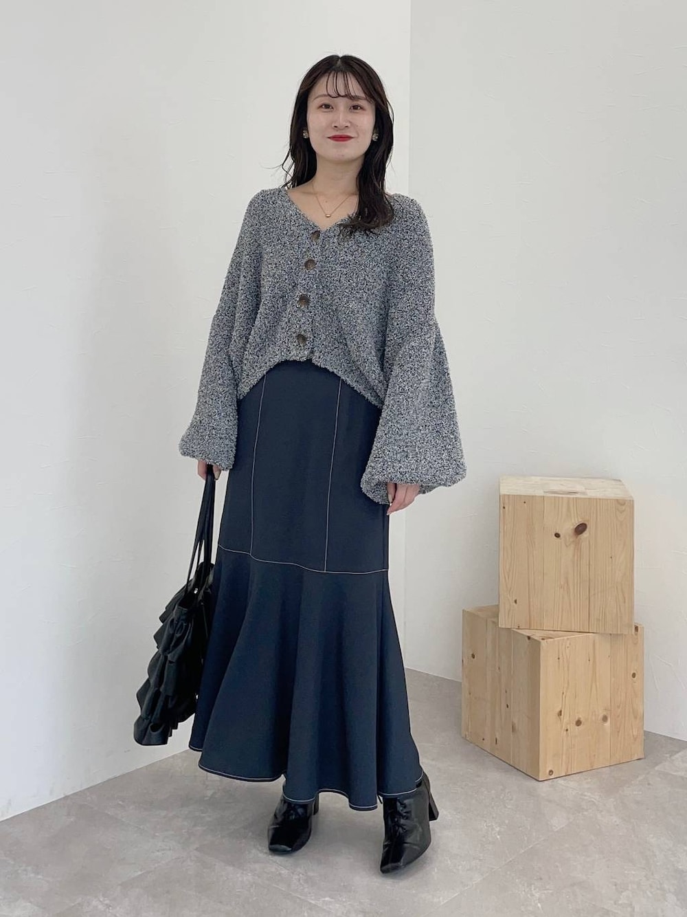 155cm|骨格ウェーブ 【カーディガン】 愛甲千笑美さんとのコラボアイテム! ホルターネックニットとカーディガンのセットアイテムで着回しも◎ カーディガンを着回してみました。 もちもちな生地感、毛玉にならないニットなので長く着ていただけます! 【スカート】 コルセットがセットのスカート♪ 別でももちろん使え、コルセットをビスチェとして使うこともできます☺︎ 後ろのゴムが結構伸びるので窮屈感なく履けます! 【ブーツ】 レースアップデザインがポイントなブーツ!とてもほっそり見えてフェミニンコーデにもカジュアルコーデ合わせにもおすすめ。レースアップでフィット感も調整できます☺︎ ※サンプルのためシューズはLサイズを着用していますが、普段は23.5cmでMサイズを履いています