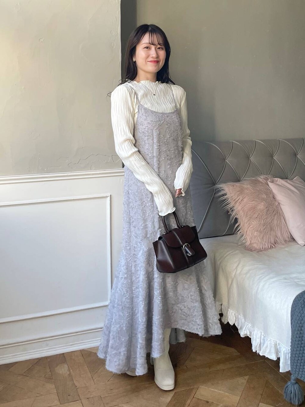 155cm|骨格ウェーブ 【トップス】 web限定のシンプルなクシュクシュトップス♡ プチプラで、色違いでも欲しくなっちゃうカラー展開♪ 1枚でもレイヤードでも楽しめます☺︎ 【ワンピース】 1枚でおしゃれ見えフェザーキャミワンピース! 前後差があって前丈がすっきりしたデザインです。 背中の方にリボンがあり、丈感も調整できます♪ 薄手のニットと合わせた着こなしがイチオシです☺︎ 【ブーツ】 厚底デザインなのでヒールの高低差は少なく疲れにくいです。ヒールも太めで安定感があります。 ※サンプルのためシューズはLサイズを着用していますが、普段は23.5cmでMサイズを履いています