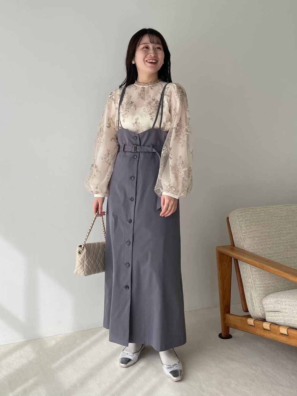 155cm|骨格ウェーブ 【ブラウス】 不動の大人気!フローラルブラウスが今年も登場しました☺︎ 繊細な刺繍デザインがコーディネートを上品に見せてくれ、かつお家でお洗濯できちゃう優秀ブラウスです。 【スカート】 タイトすぎず広がりすぎないシルエットが細見え&体型カバーしてくれる定番スカート! ニットやブラウスを合わせるとオールシーズン着られます☺︎ 【シューズ】 透け感のあるデザインがお洒落すぎるバレエシューズ!軽くて履き心地◎フラットでも脚が綺麗に見えます♪ ※サンプルのためシューズはLサイズを着用していますが、普段は23.5cmでMサイズを履いています