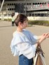 MiO(mysty woman 本部)のシャツ/ブラウス「【WEB限定アイテム】フリルショルダーブラウス 119181」を使ったコーディネート