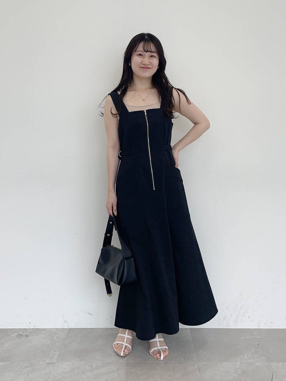 155cm|骨格ウェーブ 【ジャンスカ】 トレンドのミリタリー要素を取り入れたジャンスカ! ウエストはベルトで調整でき、フィット&フレアなシルエットを楽しめます♪ 丈はアジャスターで調整できます! 【サンダル】 細めなストラップが華奢見えするサンダル!フェミニンコーデからカジュアルコーデにまで合わせられる万能サンダルです。 ※サンプルのためシューズはLサイズを着用していますが、普段は23.5cmでMサイズを履いています