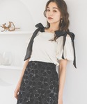 MiO(mysty woman 本部)のニット/セーター「【WEB限定】ショルダーリボンニットプルオーバー 135542」を使ったコーディネート