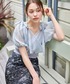 MiO(mysty woman 本部)のTシャツ/カットソー「リボンカシュクールプルオーバー 120988」を使ったコーディネート