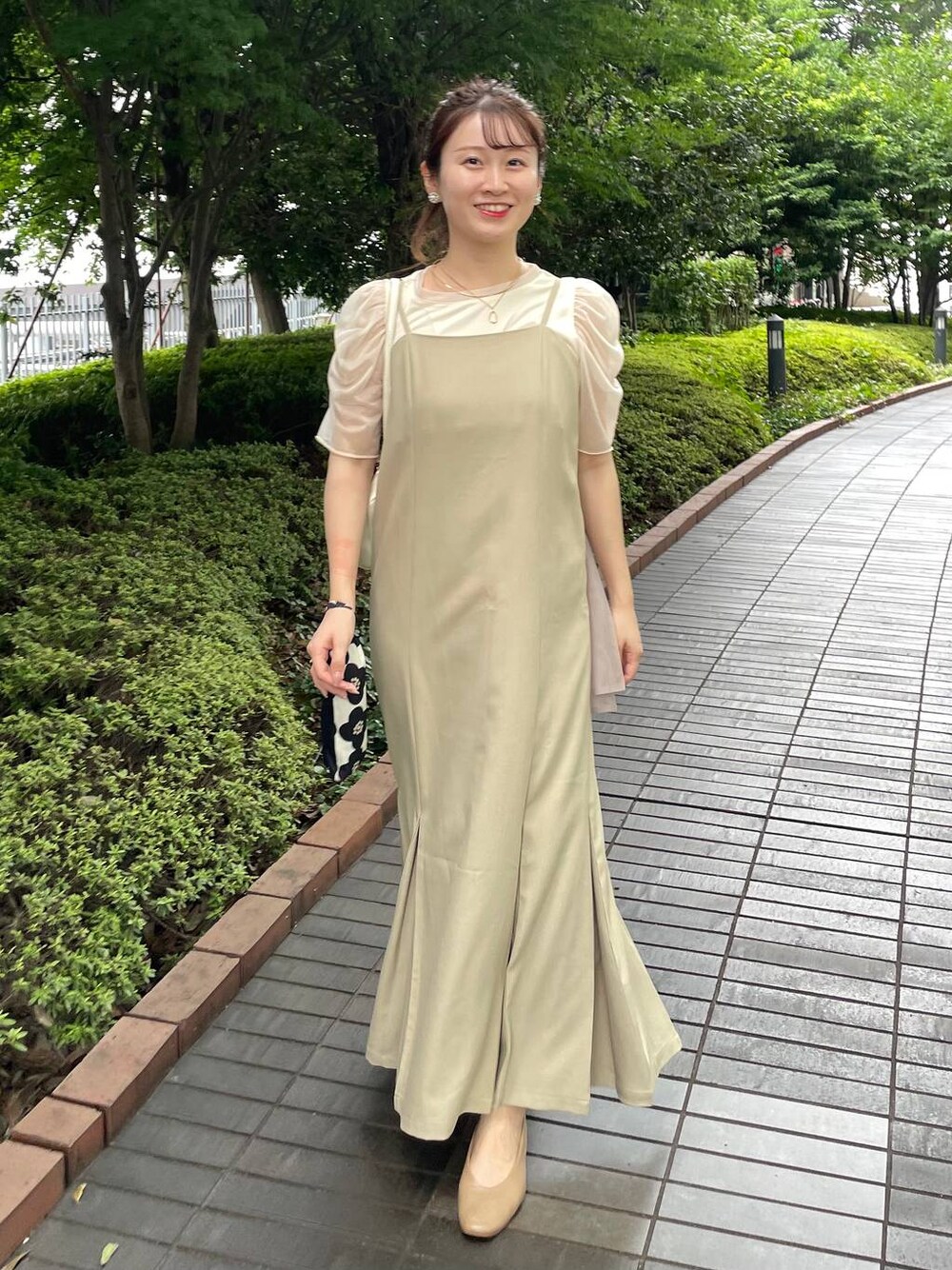 155cm|骨格ウェーブ 【トップス】 さりげないラメ感が上品! 柔らかい素材でチクチク感もなく着やすいです。 透けすぎない袖デザインが涼しさ&体型カバーばっちり♪ 【ワンピース】 MiO企画アイテム! チュールリボンがセットのキャミワンピ🤎 リボンは取り外し可能なのでシンプルにキャミワンピだけでも着用可能です! 裾だけ広がる美シルエットにこだわりました♪ アジャスター付きなので丈の調整も可能です◎
