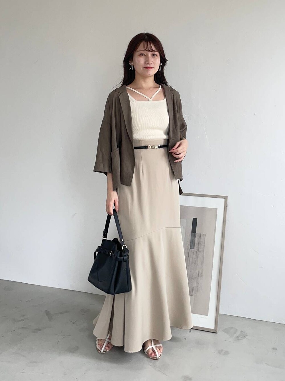155cm|骨格ウェーブ 【ジャケット】 ゆるっとオーバーサイズの楊柳ジャケット! 7分袖なのも手首が細く見えて嬉しい♪ 夏でもサラッと羽織れて便利な1着です☺︎ 【タンクトップ】 トレンドのストリングデザインタンクトップ♪ 肩部分の幅は太めで1枚で着る時も安心です。 カーディガンやシャツのインナーに着るだけで一気に今年っぽくなります☺︎ 【スカート】 綺麗めシルエットで、すらっと見えるように着丈は長めの設定。 ハイウエストで脚長効果もバッチリです◎ バックフレア部分だけ生地を増やしてもらい、揺れ感がより上品! オールシーズン履けるのでTシャツからニットまで合わせられます♡ 【サンダル】 細めなストラップが華奢見えするサンダル!フェミニンコーデからカジュアルコーデにまで合わせられる万能サンダルです。リアルバイしました♡