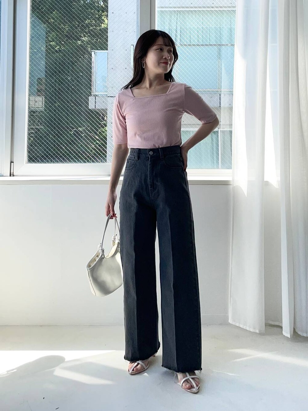 155cm|骨格ウェーブ 【トップス】 シンプルなラメ入りトップス♪ 薄手で柔らかくてレイヤードもしやすい生地感です。 ネックは2wayで着られますがスクエアネックで着るのがデコルテラインが綺麗に見えてお気に入り! 【デニム】 セルフカット可能なデニムパンツ! サイズもS.Mあるので自分にぴったりなサイズ感が見つかります👀 ストレートシルエットなので脚が長く見え、ブラウスやTシャツ、様々なトップスと合わせられます☺︎ 【サンダル】 細めなストラップが華奢見えするサンダル!フェミニンコーデからカジュアルコーデにまで合わせられる万能サンダルです。 ※サンプルのためシューズはLサイズを着用していますが、普段は23.5cmでMサイズを履いています