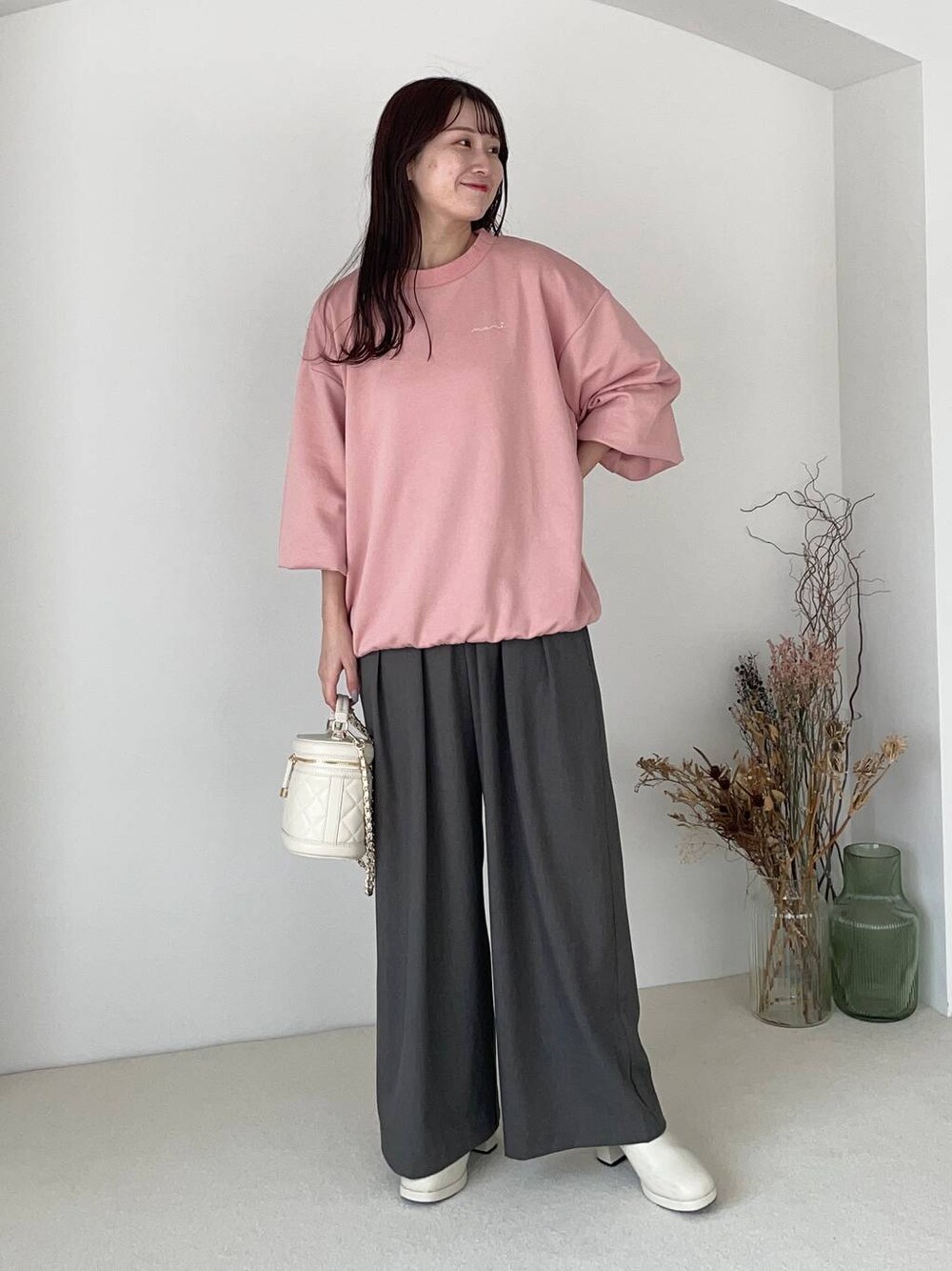 155cm|骨格ウェーブ 【スウェット】 MiO企画スウェット♪ たぽんとしたお袖にし、裾もややふんわりとしたシルエットに♡ ちび刺繍には崩した文字をさりげなく入れています☺︎ 使いやすいシンプルなデザインで、秋〜春まで使えるスウェットです♪ 【パンツ】 履いてとっても気に入ったワイドパンツ! 横に大きくなりすぎず、でもゆるっと感はあるサイズ感♡ 155cmで、フラットシューズでギリギリでしたがブーツやサンダル、少しヒールのあるものと合わせるのがお気に入りスタイリングです♪ 【ブーツ】 しっかりヒールもありますが前底にも厚みがあるので高低差がなく疲れにくいブーツ♪ ファスナーがなく、履き口がニットなので足首が痛くなりにくいです◎ ※サンプルのためシューズはLサイズを着用していますが、普段は23.5cmでMサイズを履いています