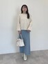 155cm|骨格ウェーブ 【ニット】 ニットのカラーをアイスクリームのフレーバーに例えた名前も可愛すぎるニット!! 柔らかい生地感でチクチクゼロです! 形はシンプルで、首元は開きすぎず詰まりすぎずなクルーネック。 お袖は少し長めでボリュームが出せます❤︎ 【スカート】 トップスとセットアップでも着られるストレッチスカート! 若干インナーの線は見えやすいかなと思うのでガードルなど履くと綺麗に着こなせます♪ 【ブーツ】 しっかりヒールもありますが前底にも厚みがあるので高低差がなく疲れにくいブーツ♪ ファスナーがなく、履き口がニットなので足首が痛くなりにくいです◎ ※サンプルのためシューズはLサイズを着用していますが、普段は23.5cmでMサイズを履いています