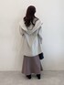 MiO(mysty woman 本部)のノーカラーコート「BIGフードミドルコート 116304」を使ったコーディネート
