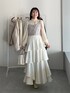 155cm|骨格ウェーブ 【アウター】 オーバーサイズのショート丈コート☺︎ アームホールはゆとりがあるので厚手ニットも楽々着られます♪ 少し抜いて着るのがこなれ感出ておすすめです。 【ビスチェ】 ビスチェとスカート別でも着られる、着回し神アイテム! ビスチェの着回しです。 後ろにはゴムが入っていて、アジャスターで丈も調整できます◎ 【スカート】 ふりふりティアードの揺れ感が可愛いスカート♪ ボリュームが出過ぎないように腰回りはすっきりデザインです☺︎ 【ブーツ】 しっかりヒールもありますが前底にも厚みがあるので高低差がなく疲れにくいブーツ♪ ファスナーがなく、履き口がニットなので足首が痛くなりにくいです◎ ※サンプルのためシューズはLサイズを着用していますが、普段は23.5cmでMサイズを履いています