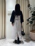 155cm|骨格ウェーブ 【ニット】 大人気のラメニット!今年もカラーが豊富です♪ ラメ入りなのにチクチクせず、程よいラメ感もフェミニンな印象に。 袖口は捲るとたぷっと可愛いボリューム袖になります☺︎ 【セットアップ】 別でも着られる、着回し神アイテム!! 一緒に着るとキャミワンピ風で着られます☺︎ ビスチェの後ろにはゴムが入っていて、アジャスターで丈も調整できます◎ スカートは高見えする上品なツイード素材♡ ナローシルエットなのでゆるっとしたニットと合わせたコーディネートもおすすめです☺︎ 【ブーツ】 しっかりヒールもありますが前底にも厚みがあるので高低差がなく疲れにくいブーツ♪ ファスナーがなく、履き口がニットなので足首が痛くなりにくいです◎