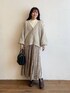 155cm|骨格ウェーブ 【カーディガン】 ゆるっとミドル丈ですが、すっきりVネックのメランジカーディガン♪ 袖のたっぷり感もとっても好み! 少し後ろに抜いて着るとこなれ感が出ます◎ 【ニット】 厚手すぎず薄手すぎずなベーシックニット♪ 袖のボリュームが女性らしく、1枚でも、ジャンスカのインナーとしても着用できます☺︎ 【スカート】 光沢感がゴージャスなクラッシュベロアのプリーツスカート♪ シンプルなトップスとの合わせがおすすめです☺︎ 【ブーツ】 しっかりヒールもありますが前底にも厚みがあるので高低差がなく疲れにくいブーツ♪ ファスナーがなく、履き口がニットなので足首が痛くなりにくいです◎ ※サンプルのためシューズはLサイズを着用していますが、普段は23.5cmでMサイズを履いています