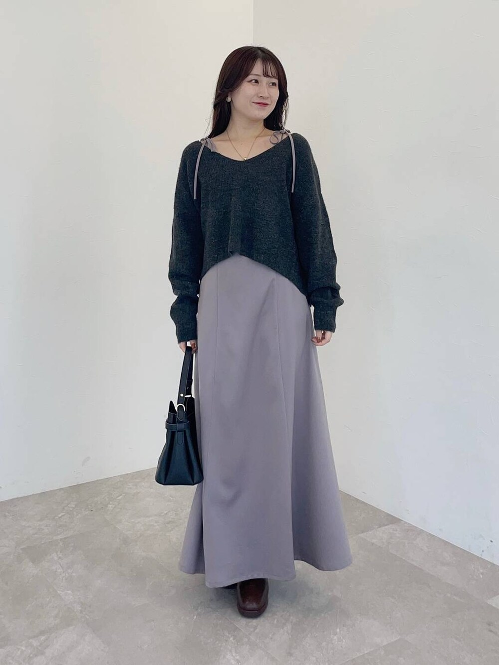 155cm|骨格ウェーブ 【ワンピース】 ニットとキャミワンピのセットアイテム♪ 肩リボンでキャミワンピの丈感を調整できます◎ ニットの首周りはやや開き気味なので気になる方は中にシアーのインナーをレイヤードしても良さそうです! 【ブーツ】 しっかりヒールもありますが前底にも厚みがあるので高低差がなく疲れにくいブーツ♪ ファスナーがなく、履き口がニットなので足首が痛くなりにくいです◎ ※サンプルのためシューズはLサイズを着用していますが、普段は23.5cmでMサイズを履いています