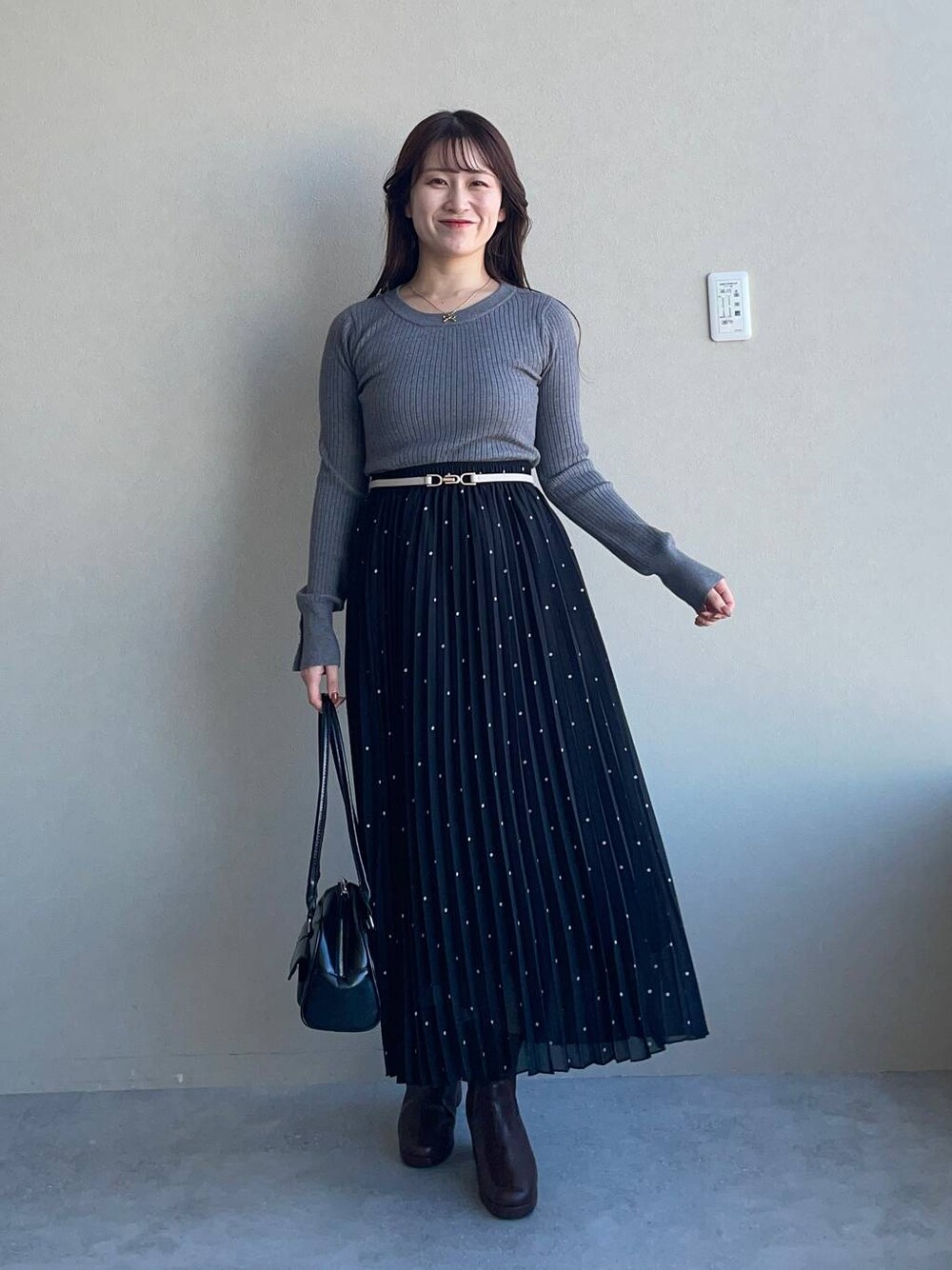 155cm|骨格ウェーブ 【トップス】 web限定のプチプラニット! 袖のボタンがポイントで、厚くないニットなので インスタイルのコーディネートにも合わせやすい☺︎ 【スカート】 コルセットとプリーツスカートがセットアイテム♪ スカートのみの着用です☺︎ ファスナーがなくウエストが総ゴムなので着脱が楽ちん&履き心地抜群! 【ブーツ】 しっかりヒールもありますが前底にも厚みがあるので高低差がなく疲れにくいブーツ♪ ファスナーがなく、履き口がニットなので足首が痛くなりにくいです◎ ※サンプルのためシューズはLサイズを着用していますが、普段は23.5cmでMサイズを履いています