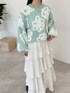 155cm|骨格ウェーブ 【ニット】 ふわっふわフェザーが着心地抜群のニット♪ 大きなフラワーデザインがコーデのポイントになります♡ ショート丈なのでインせずに着られますよ☺︎ 【スカート】 ふりふりティアードの揺れ感が可愛いスカート♪ ボリュームが出過ぎないように腰回りはすっきりデザインです☺︎ 【ブーツ】 しっかりヒールもありますが前底にも厚みがあるので高低差がなく疲れにくいブーツ♪ ファスナーがなく、履き口がニットなので足首が痛くなりにくいです◎ ※サンプルのためシューズはLサイズを着用していますが、普段は23.5cmでMサイズを履いています