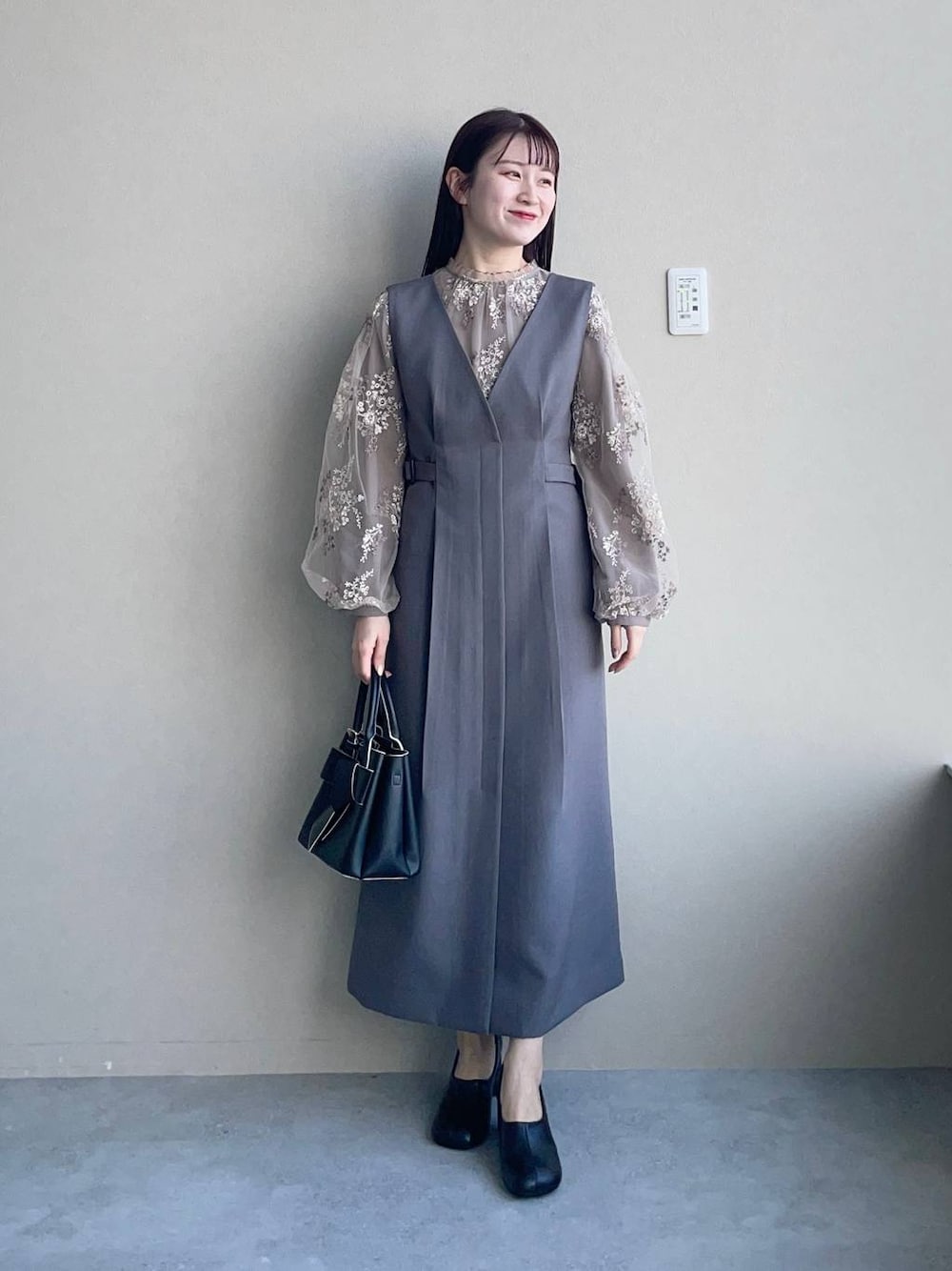 155cm|骨格ウェーブ 【ブラウス】 今年も長袖バージョン出ました♪不動の大人気ブラウス♡ 繊細な刺繍デザインがコーディネートを上品に見せてくれ、かつお家でお洗濯できちゃう優秀ブラウスです。 【ジャンスカ】 ウエストのベルトでくびれを作れるジャンスカ♪ セットアップ着用可能なジャケットもあります◎ セレモニーでもお使いいただけます。 【パンプス】 太ヒールで安定感抜群のパンプス☺︎少し丸いラウンドスクエアが可愛らしい印象に♡ ※サンプルのためシューズはLサイズを着用していますが、普段は23.5cmでMサイズを履いています