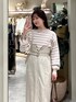155cm|骨格ウェーブ 【ニット】 シンプルで使いやすいボーダーニット♪ 身幅はゆったりシルエットなので着心地も◎ サイドスリット入りでフロントインもしやすいです。 【スカート】 細見え効果のあるサス付きナロースカート♪ ベルトでウエストの調整ができ、フロントジップで着脱も楽ちんです◎ 【ブーツ】 しっかりヒールもありますが前底にも厚みがあるので高低差がなく疲れにくいブーツ♪ ファスナーがなく、履き口がニットなので足首が痛くなりにくいです◎