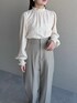 155cm|骨格ウェーブ 【ジャケット】 セレモニーやオフィスコーデにも大活躍なジャケット。 セットアップ着用可能なジャンスカ、パンツ、ビスチェの用意もあります♪ 程よくゆとりがありかっちりしすぎないので、ワンピースと合わせたオフコーデもおすすめです☺︎ 【ブラウス】 シャーリング素材が1枚で映えるブラウス✨ クラシカルな印象で着られます♪ カーディガンのインナーにも合わせられます☺︎ 【パンツ】 ジャケットやビスチェとセットアップ着用ができるストレートパンツ。 155cmでぎりぎりフラットシューズでも着用できる丈でした! 【パンプス】 太ヒールで安定感抜群のパンプス☺︎少し丸いラウンドスクエアが可愛らしい印象に♡ ※サンプルのためシューズはLサイズを着用していますが、普段は23.5cmでMサイズを履いています